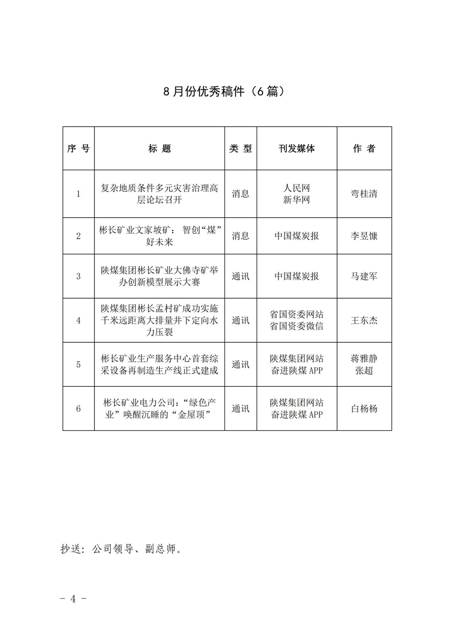 關于8月份稿件采用及優秀稿件評選情況的通報