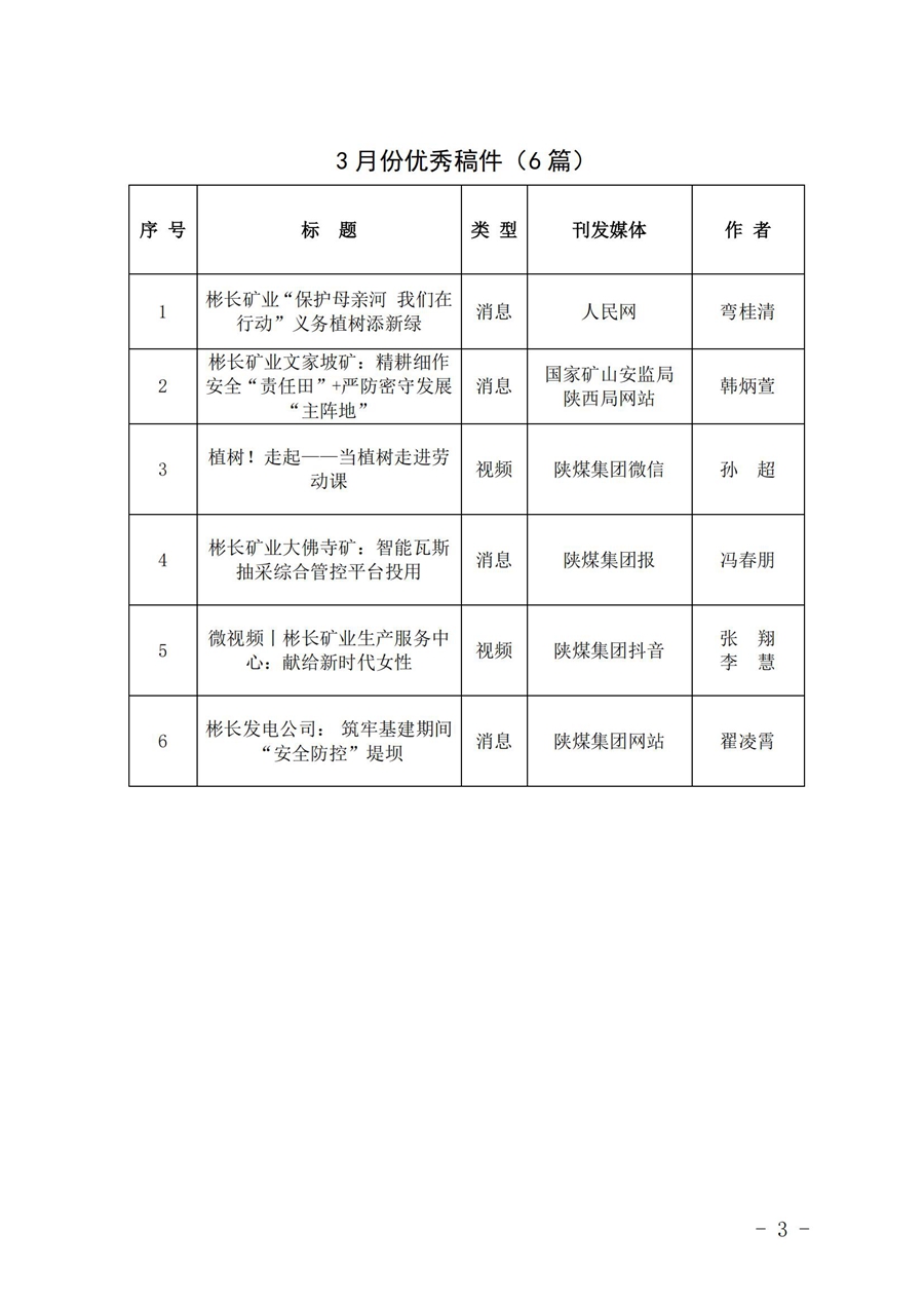 關于3月份稿件采用及優(yōu)秀稿件評選情況的通報