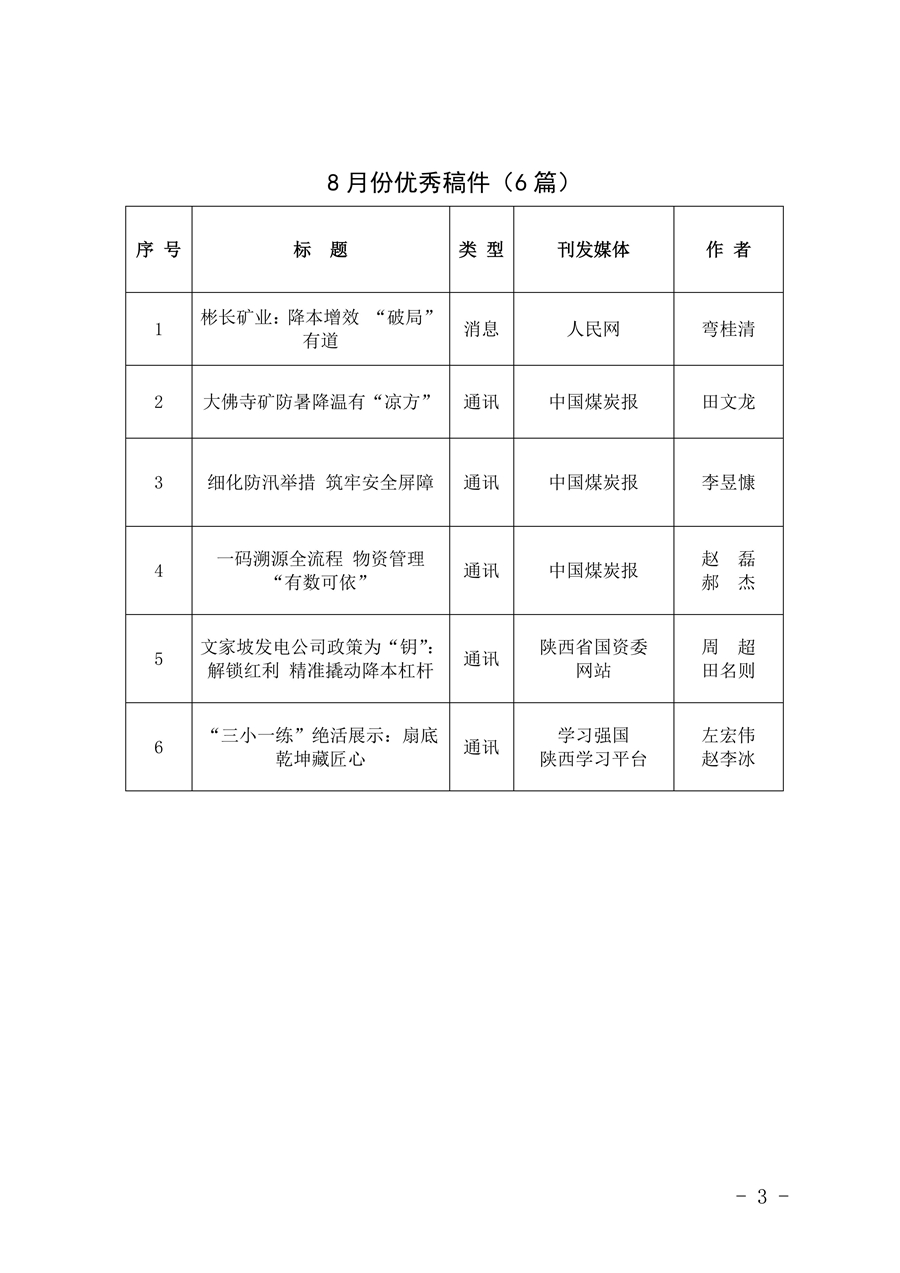 關于8月份稿件采用及優秀稿件評選情況的通報