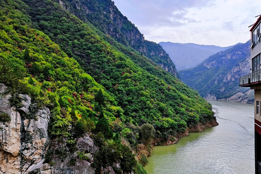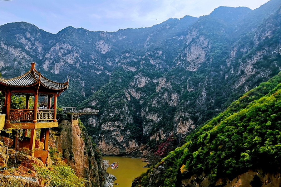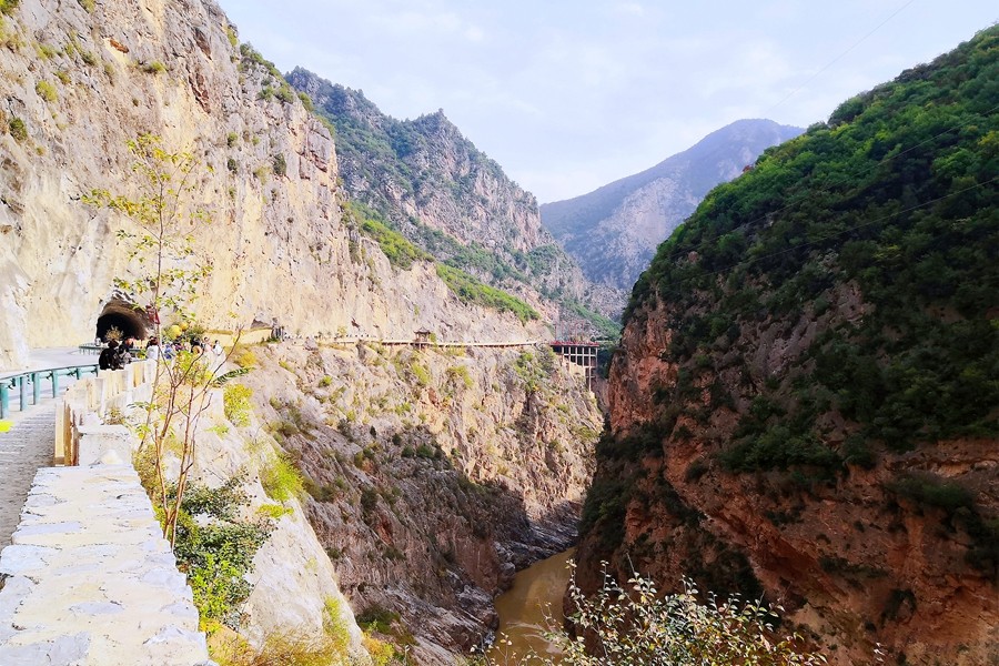 鄭國渠的秋日,褪去了往日的青綠,樹枝黃櫨繽紛點綴,斑斕的山色勾勒出屬于秋的浪漫,美了山谷。行走其間,美不勝收。(陳杰)