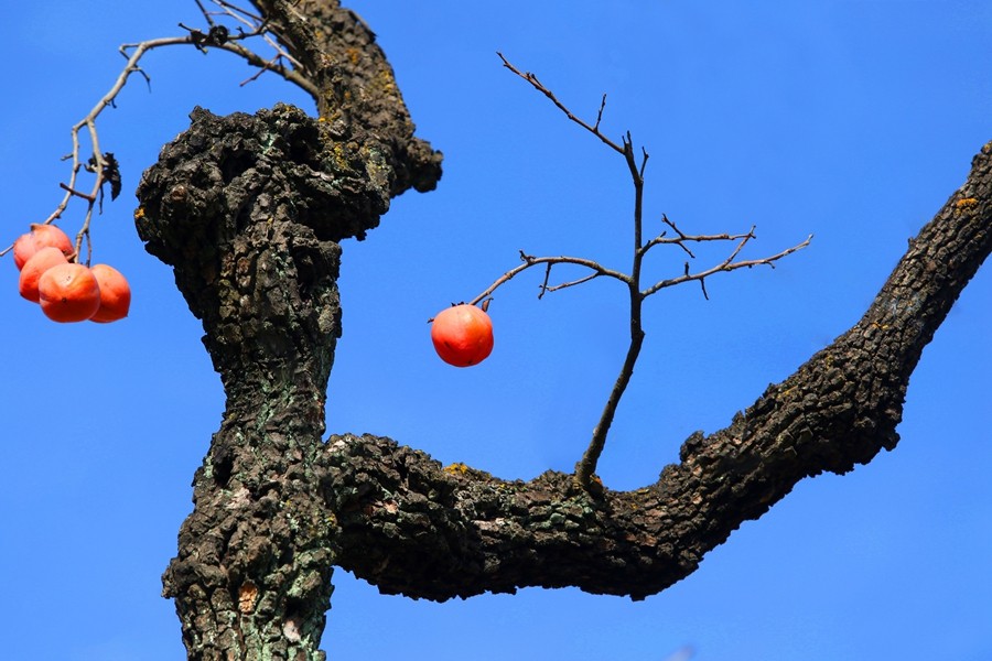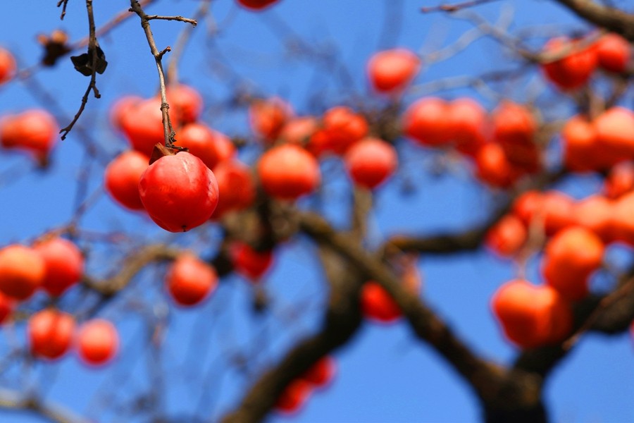 初冬,一場寒風過后,萬木凋零。放眼望去,山峁峁上獨留一片紅暈。紅彤彤的柿子掛滿枝頭,這是深秋初冬鄉野間最迷人的景色。(田文龍)