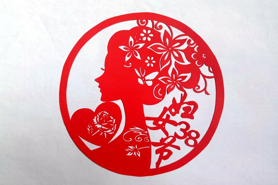 慶?!叭恕眹H勞動(dòng)?jì)D女節(jié)主題刻紙