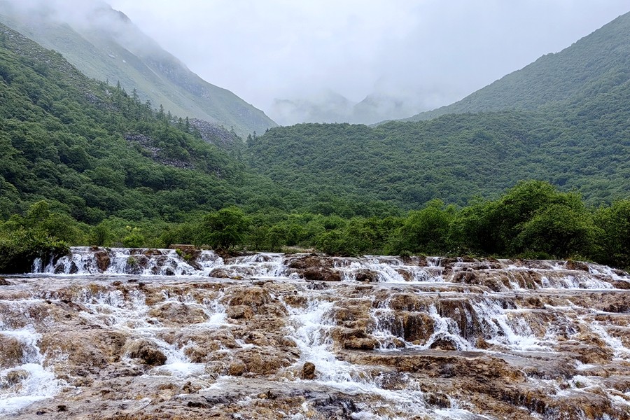 黃龍景區位于四川省阿壩藏族羌族自治州松潘縣岷山主峰雪寶頂下,面臨涪江源流,是中國唯一保護完好的高原濕地。其以規模宏大、結構奇巧、色彩豐艷的地表鈣華景觀為主景,以罕見的巖溶地貌蜚聲中外,堪稱人間仙境,素有“人間瑤池”的美譽。(大佛寺礦 牛偉棟)