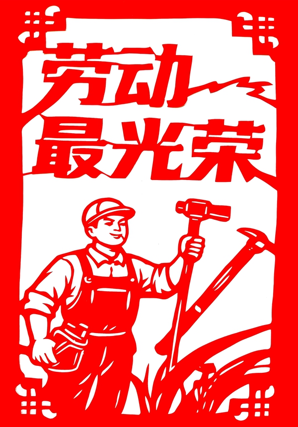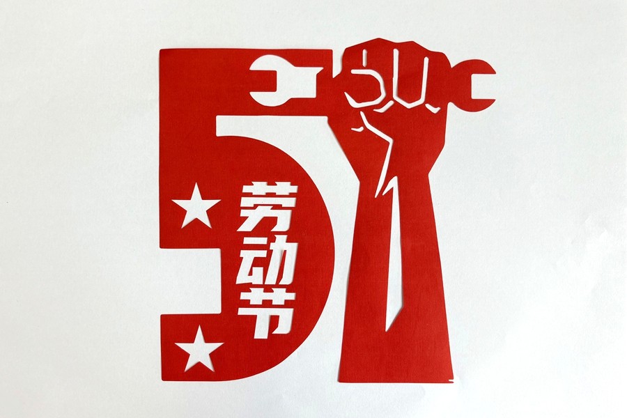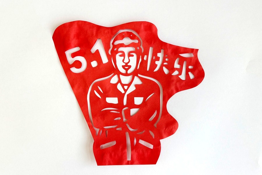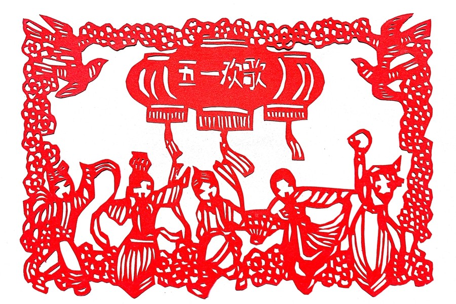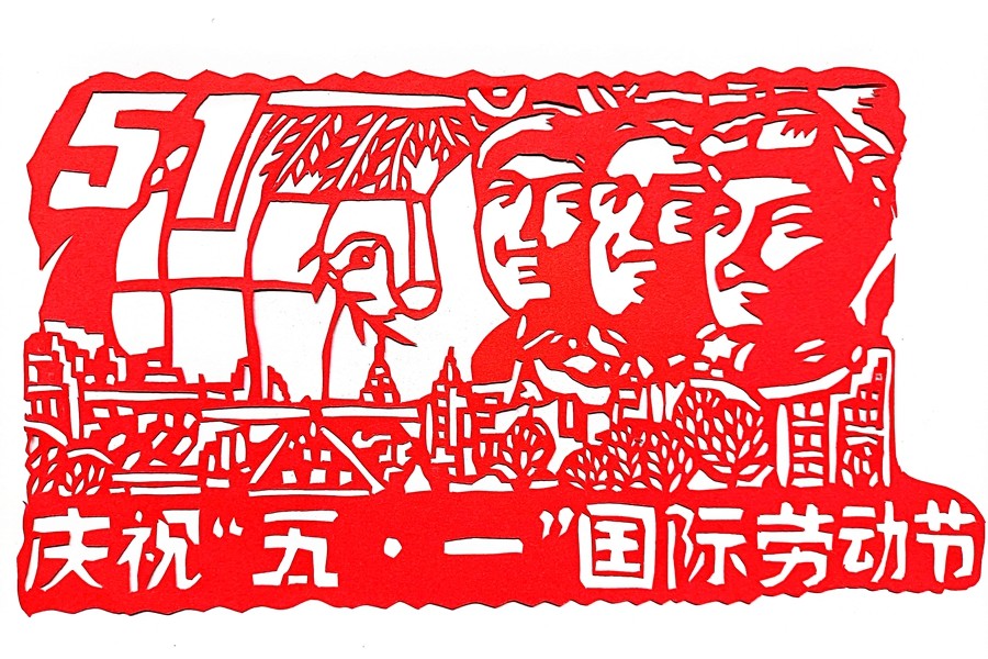 職工刻紙/剪紙:歡慶“五一”