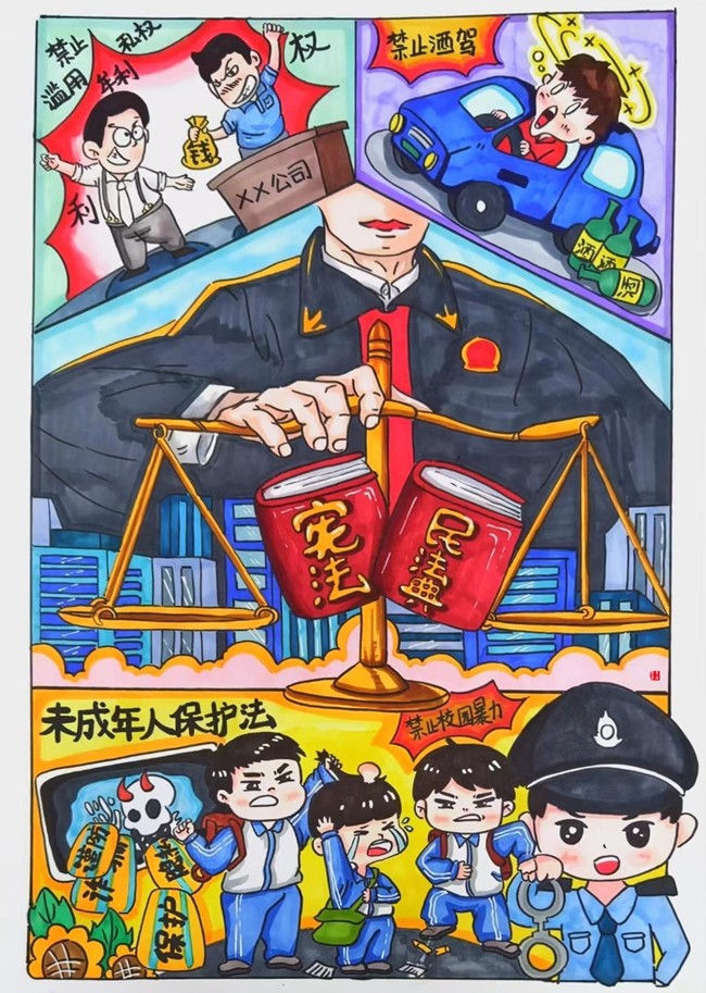 李琦繪畫(huà):知法守法 與法同行