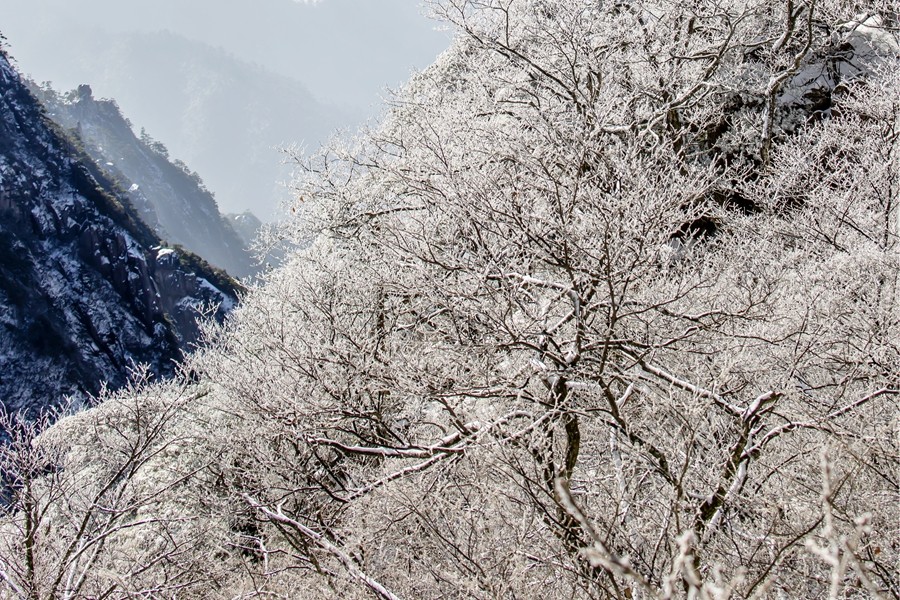 遼東寒枝之上,凝著天地素宣的霧凇奇境。疏朗林木間,霜雪被晨風雕琢成蓬松輪廓,冰晶在曦光中折射出清透交織的光暈。天光穿透霧靄輕撫,朦朧光華與枝杈曲線相融,似造化落成的工筆水墨。每一簇瓊英都凝結著瞬息的永恒,每一寸皎潔都呼吸著寒冽的純凈,駐足凝望,恍若步入被寒冬呵出的夢境,沉浸式領略時光以風為刃、以霜為墨的靈犀之工。(小莊礦 雷智勇)
